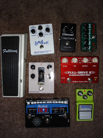 Boutique Pedals: Fulltone, Tonebone, Maxon, ZVex and T-Rex stomp boxes. |
